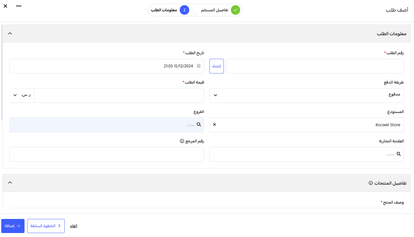 رقم الطلب: يمكنك إنشاء رقم طلب تلقائيًا أو إدخاله يدويًا.