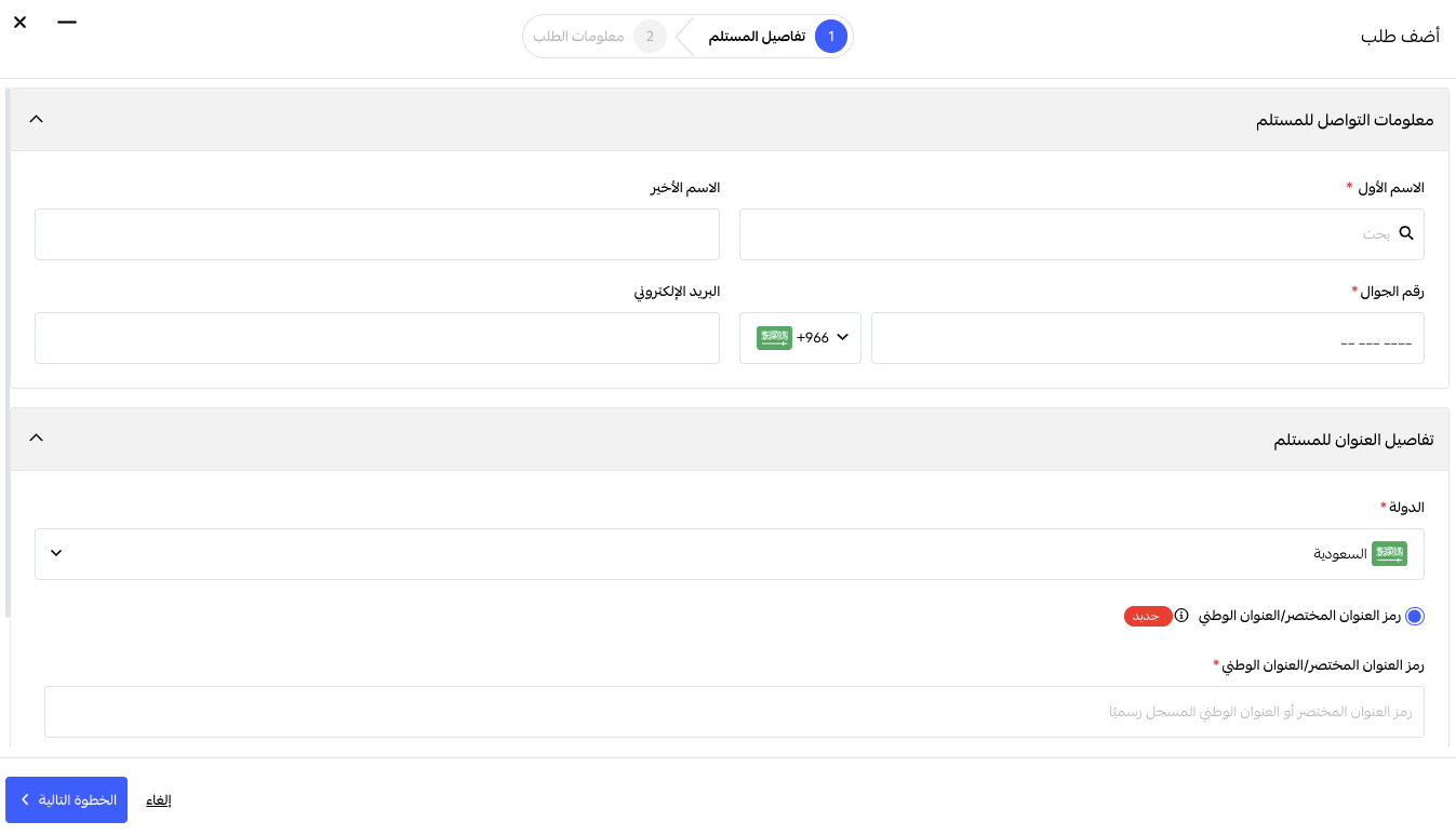ستظهر نافذة جديدة تطلب منك إدخال تفاصيل المستلم وتفاصيل الطلب.