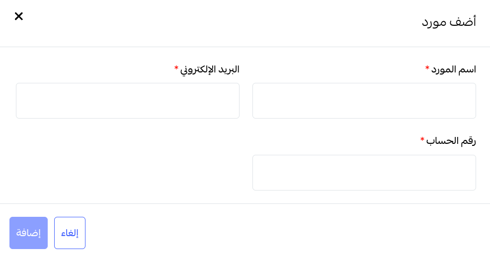 البريد الإلكتروني: بريد إلكتروني خاص بالمورد (مطلوب).
