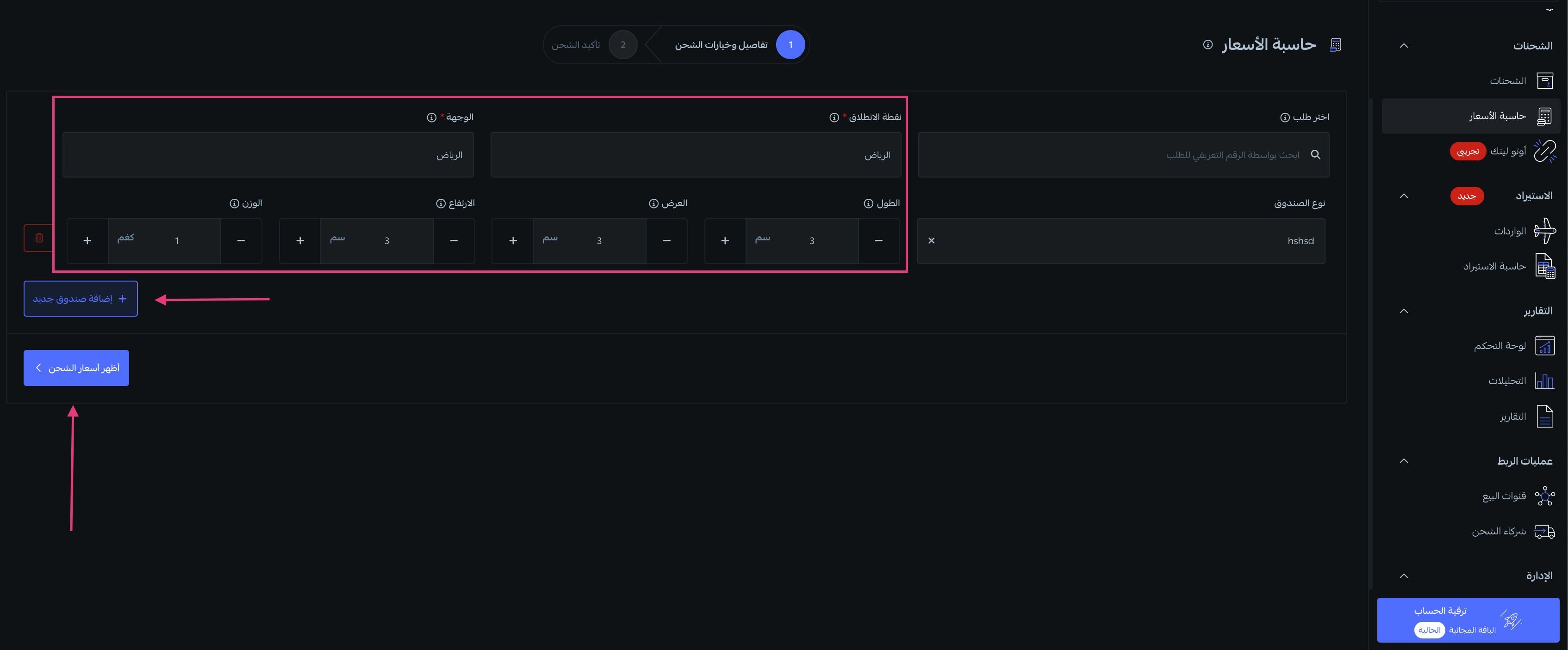 إذا كانت شحنتك تحتوي على عدة طرود، يمكنك إدخال عدد الصناديق في حاسبة الأسعار، وستقوم الأداة بحساب التكلفة وفقًا لذلك.