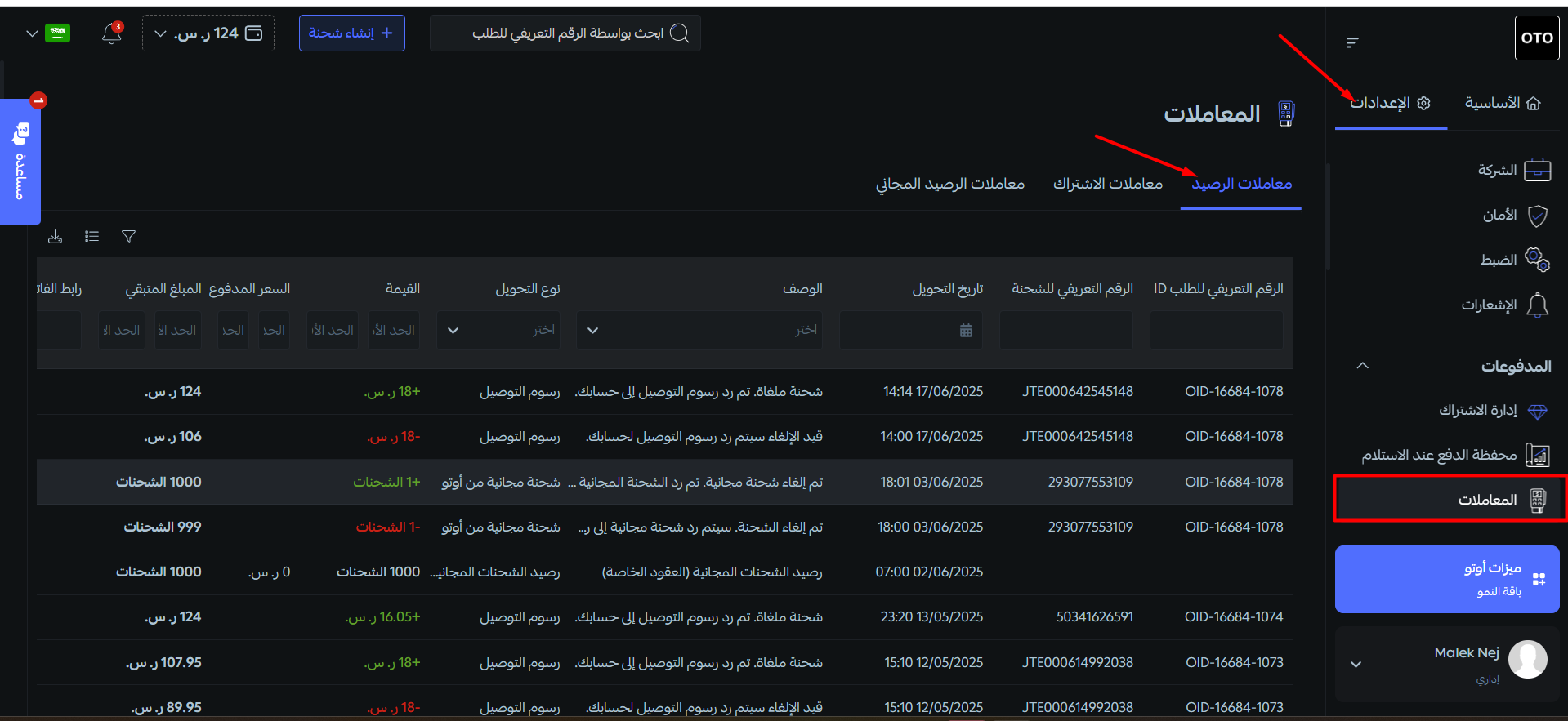 يمكنك عرض جميع المعاملات، بما في ذلك الشحنات والخصومات، من خلال الخطوات التالية: