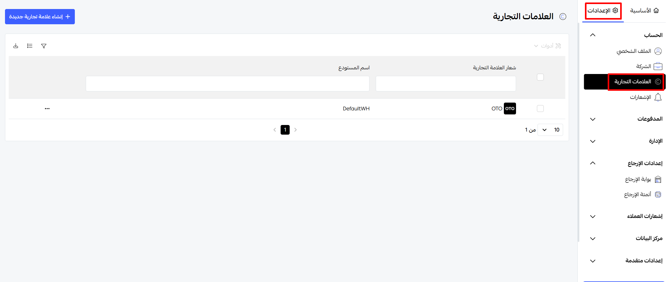 انتقل إلى:الإعدادات -العلامات التجارية
