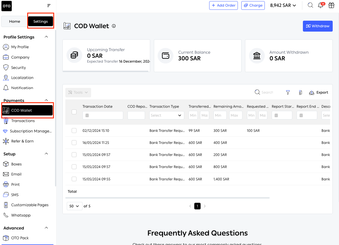 - Q5: Can I charge my wallet in OTO using the COD amount I have?