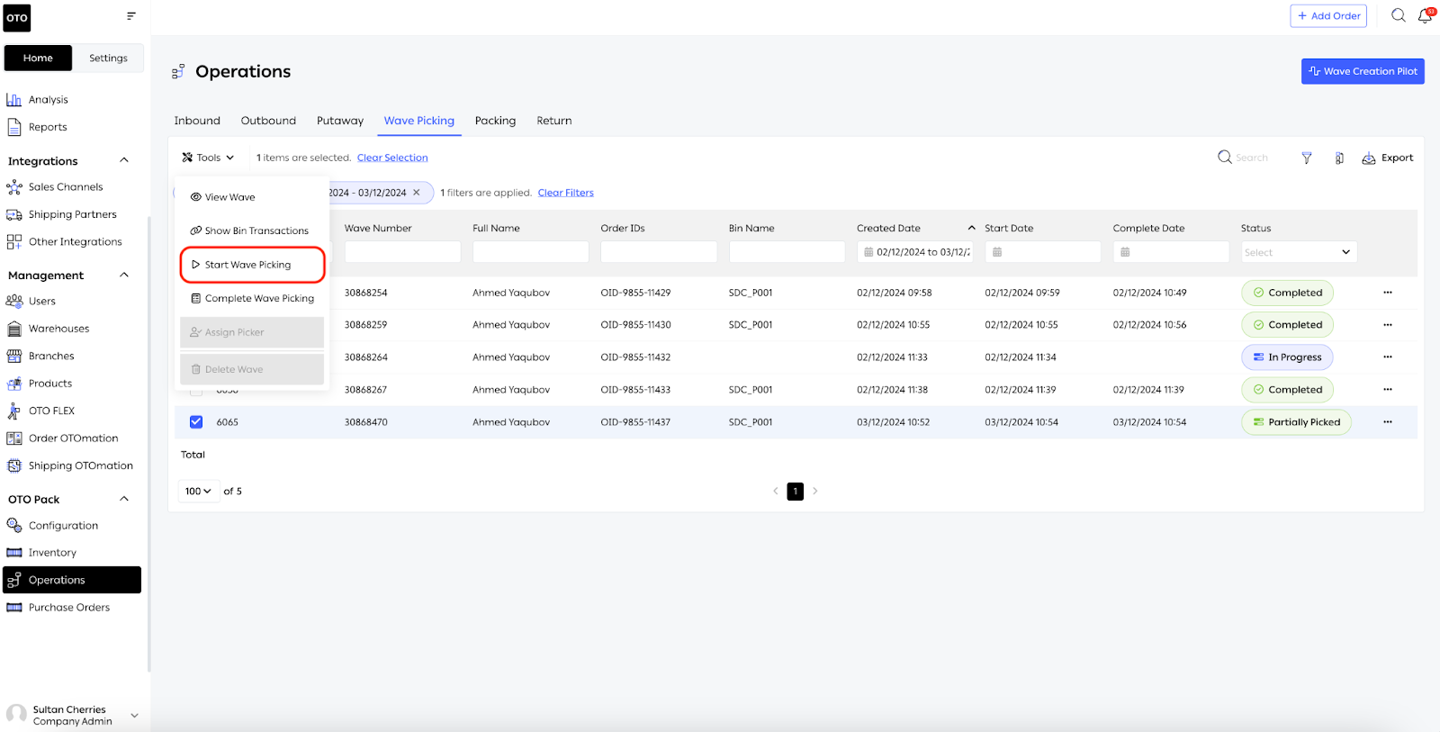 From the Wave Picking screen, managers can oversee wave statuses, such as: