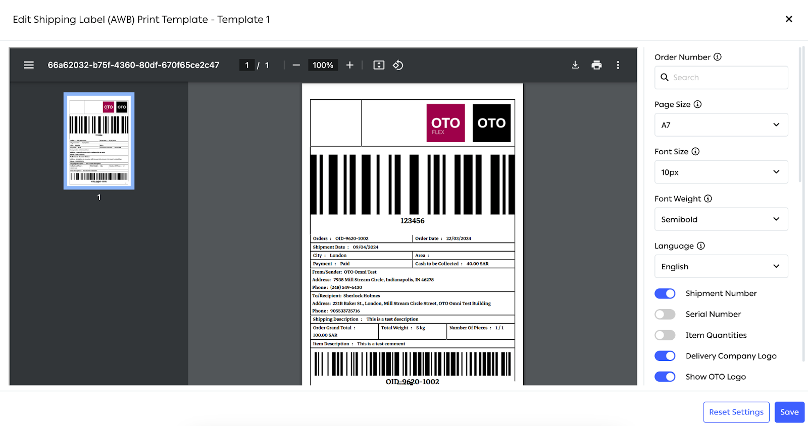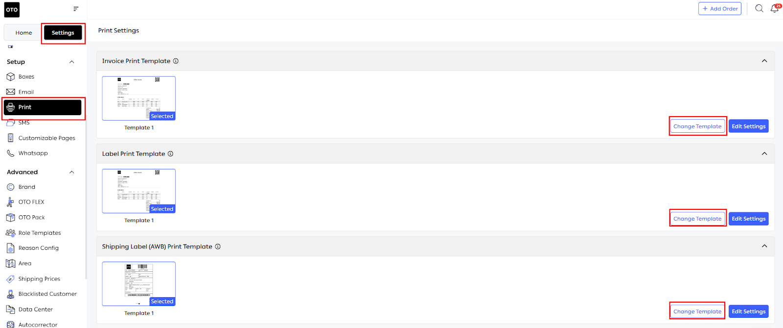 Some shipping partners integrated with OTO use OTO's own AWB template. OTO has a print settings feature where you can edit or adjust this template. With this settings page, you can make your AWB settings and invoice(order details).