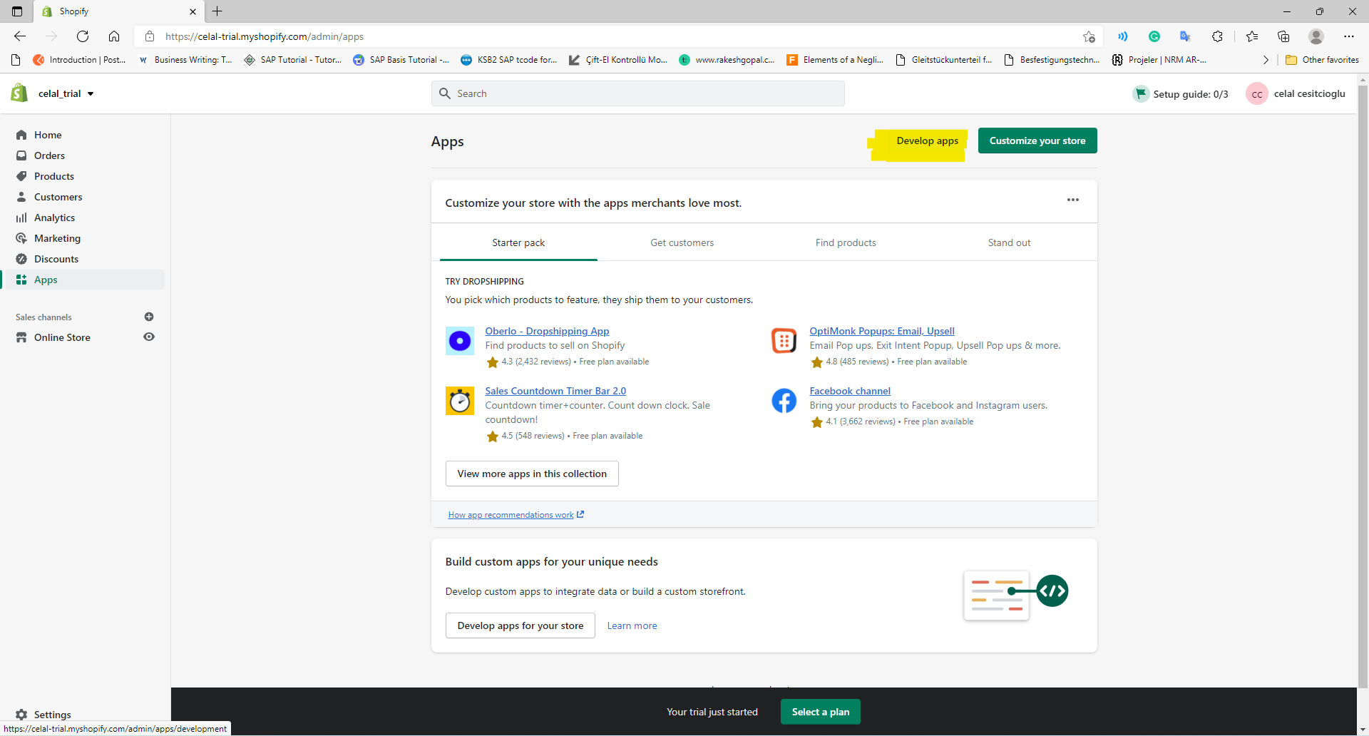 1. Open the admin page on the Shopify platform https://apps.shopify.com/oto