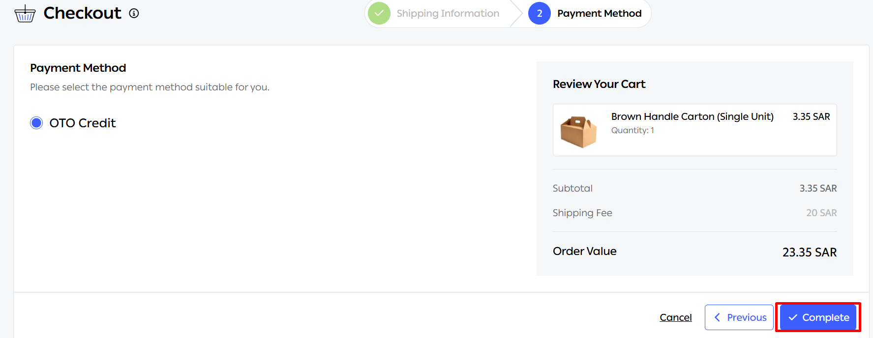 Currently, only OTO Credit is supported. Make sure your wallet has sufficient balance before placing an order.