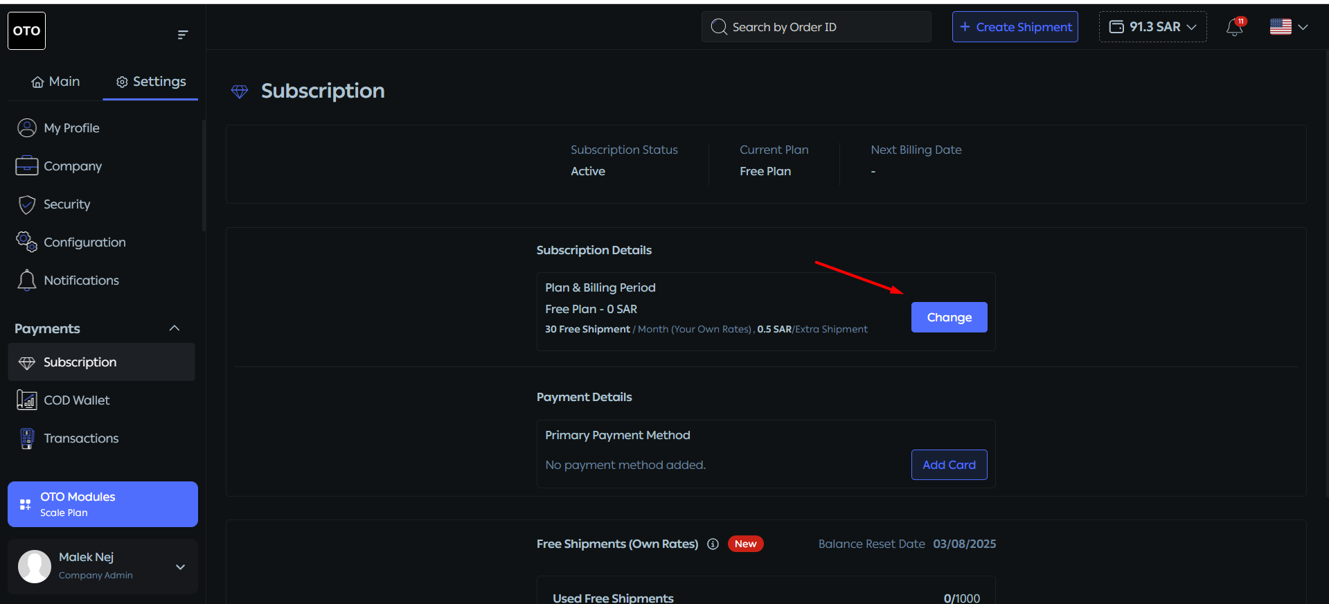 Whether you're just starting out or scaling your operations, OTO makes it easy to upgrade your plan based on your business needs. Here’s a step-by-step guide on how to change your subscription plan in the OTO dashboard.