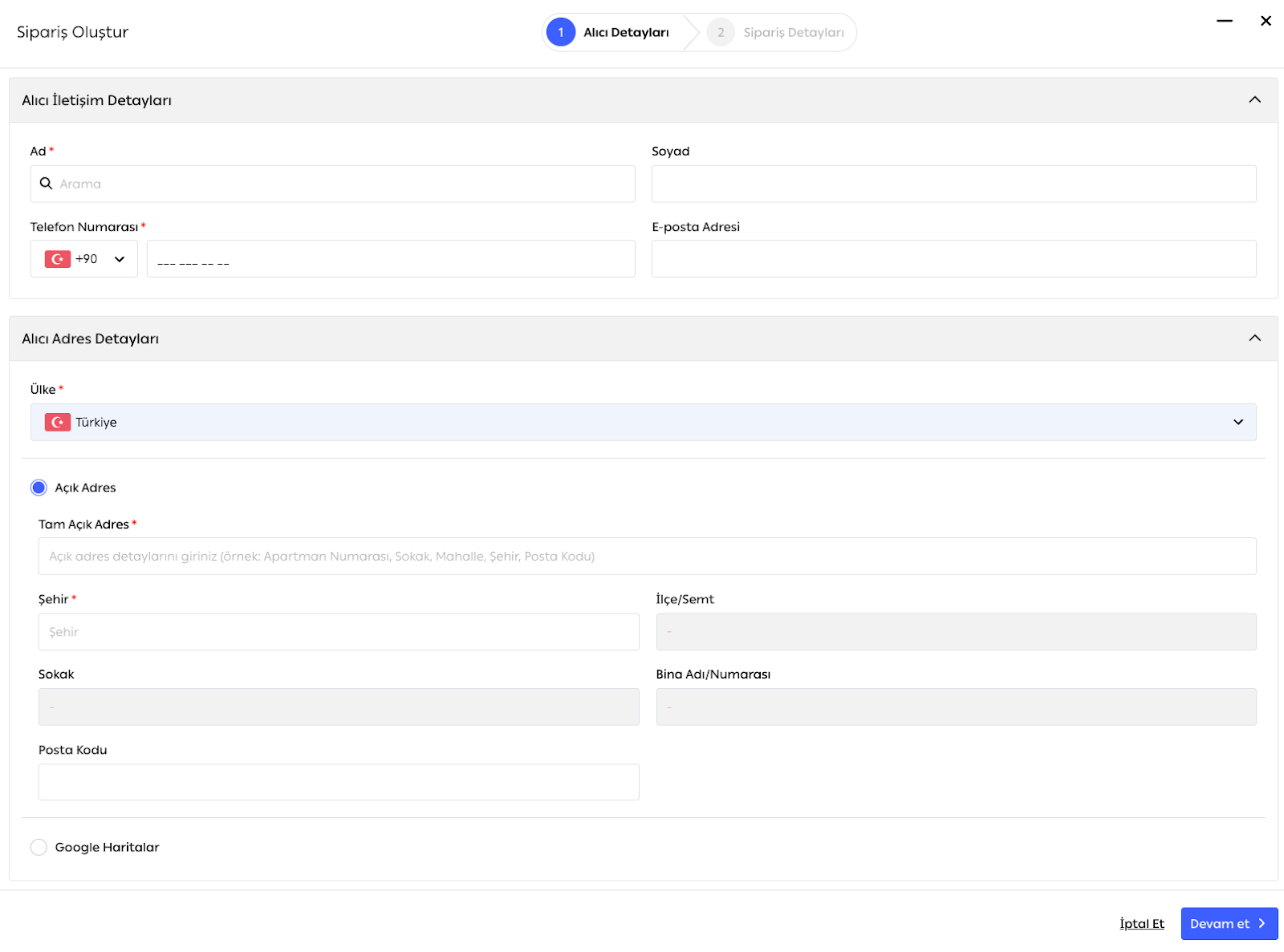 3. Alıcı Bilgilerini Tamamlayın
