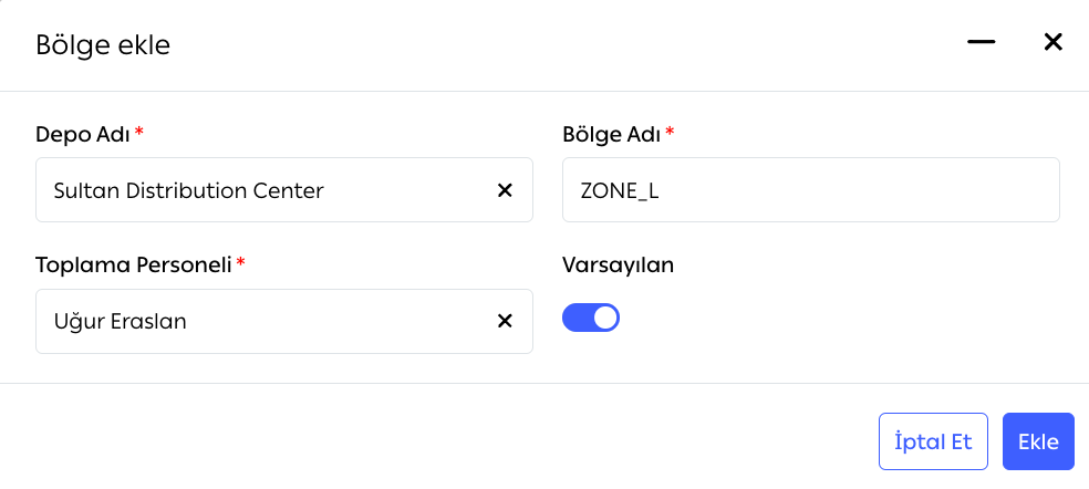 Toplama Personeli: (İsteğe bağlı) Bu bölge için bir toplayıcı atanabilir.