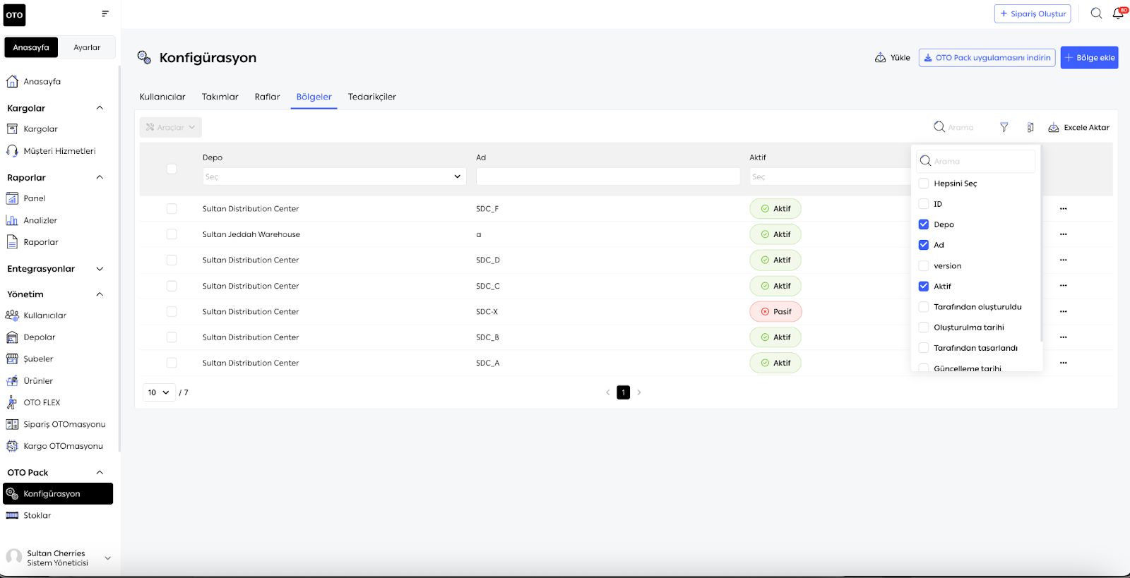 Depo Adı: Bölgenin ait olduğu depo.